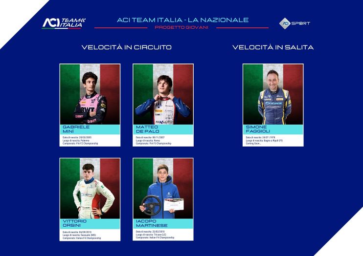 Diverse le conferme a partire da Gabriele Minì, palermitano classe 2005, tra i talenti cresciuti nel vivaio della Federazione Automobilistica Italiana, che affronterà per il secondo anno consecutivo il FIA F.2 Championship con il team MP Motorsport. Proseguirà a vestire il tricolore anche Matteo De Palo, tra i ragazzi che ha iniziato a correre attraverso le attività federali sin dai primi giri in pista nel Kart Summer Camp. Il romano classe 2007, di recente entrato nel McLaren Driver Development Programme, sarà impegnato nel FIA Formula 3 Championship dopo aver chiuso la stagione 2025 sfiorando il titolo nella Formula Regional European Championship, sempre in forza al team milanese Trident, capace di portare alla vittoria del titolo i propri piloti negli ultimi tre anni. Due giovani classe 2010 proveranno invece il salto tra le monoposto dal trampolino dell’Italian F.4 Championship. Si tratta del modenese Vittorio Orsini, ultimo vincitore del Supercorso Federale e del salentino Iacopo Martinese, vincitore dello Stage Karting 2024, anche loro usciti dai banchi della Scuola Federale e pronti a misurarsi nella serie di riferimento per la categoria.