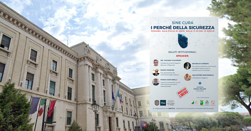 PESCARA – Si terrà a Pescara, venerdì 10 aprile, alle ore 17:30, presso la Sala «Figlia di Iorio» dal titolo «Sine cura. I perché della sicurezza». Sarà questa l’occasione per affrontate una serie di tematiche di spinosa attualità legate al concetto di sicurezza e come questo sia mutato, nel corso degli ultimi anni, attraverso cambiamenti epocali in ogni ambito, da quello informativo a quello tecnologico, militare e del controspionaggio.