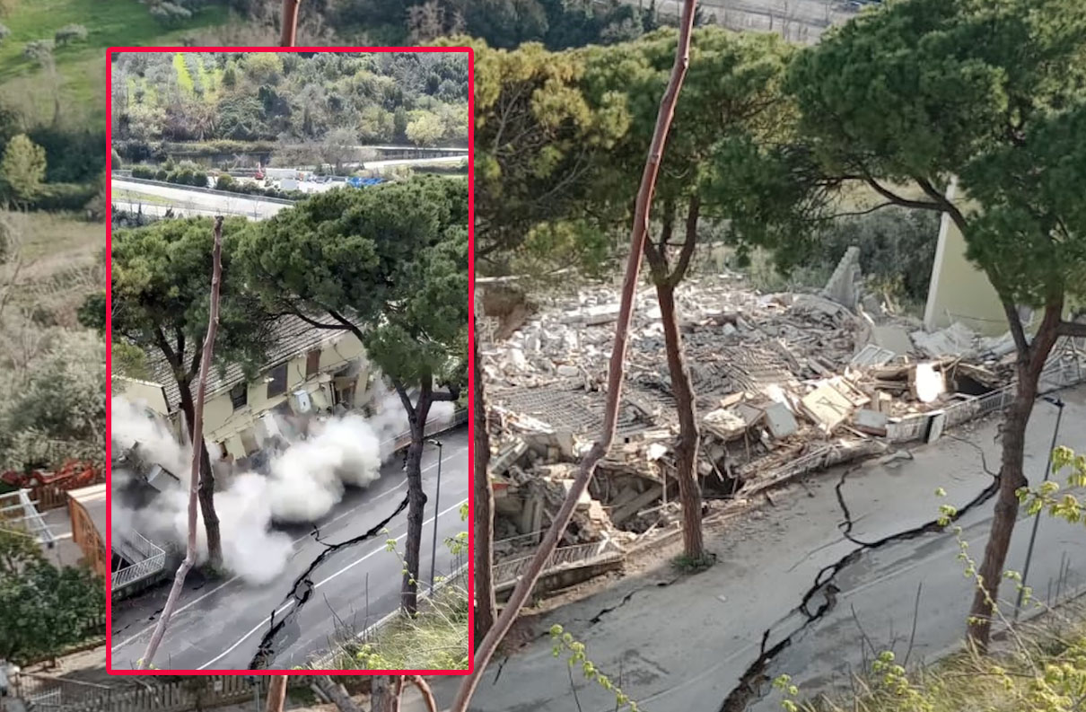 Vigili del Fuoco, tecnici del Comune e Protezione Civile sono accorsi sul posto, sul tratto di strada che porta al bivio di Santa Lucia, l’entrata principale del borgo antico, dopo l’allarme lanciato dagli abitanti della zona. All’improvviso una serie di rumori sinistri, come il guscio di una noce che scricchiola prima di rompersi ad una pressione insostenibile. Poi la polvere e un boato che si aggiunge al fragore delle macerie che collassano dopo che il terreno ha ceduto sotto le fondamenta della palazzina di tre piani. Per fortuna nessun ferito e nessun disperso. Ma sarebbe potuto finire in tragedia se qualcuno delle quattro famiglie che abitavano quella palazzina, avessero occupato i loro appartamenti. «E dire che questa notte avevano dormito in quella palazzina – ci racconta ancora scosso Paolo Di Bernardo – uno dei proprietari di un immobile attiguo, evacuato, proprio in via precauzionale perché esposto sulla frana originale, il 25 gennaio scorso assieme a sua moglie».