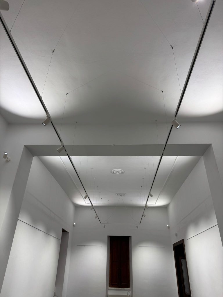 L’operazione, dal valore complessivo di 60.000 euro e finanziata interamente con risorse proprie dell’Ente, ha riguardato una riqualificazione e l’adeguamento dell’ingresso principale e delle due sale attigue del piano terra. Si è proceduto con la sostituzione dei vecchi ventilconvettori con nuovi elementi performanti e installazione di una pompa di calore ad alto rendimento posizionata sul retro della struttura. E’ stato creato un sistema d’illuminazione a binario modulabile e flessibile, progettato specificamente per valorizzare mostre d’arte ed eventi culturali con standard professionali. Infine, è stata portata a termine la verifica delle reti di scarico e la realizzazione di nuove linee di alimentazione e cablaggio con sistema di segnale BUS per il controllo intelligente delle macchine.