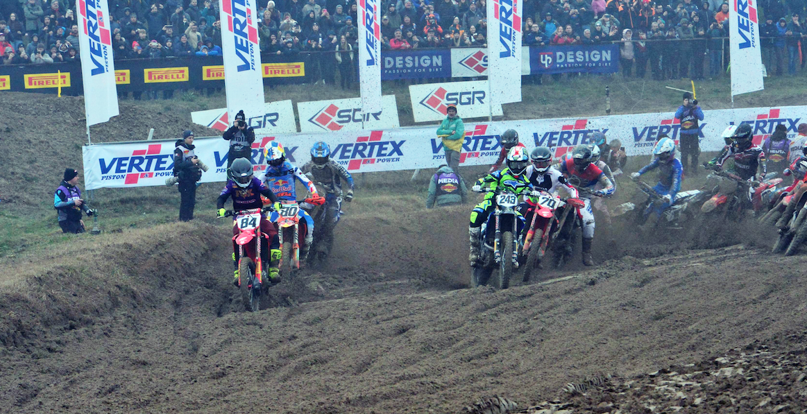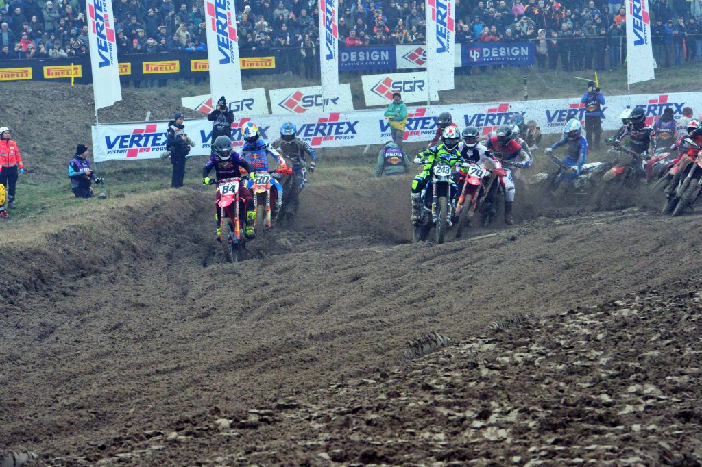 Nelle qualifiche mattutine Gajser ha firmato la pole position in 1’54”801, abbattendo il precedente record della pista di Lucas Coenen (Red Bull KTM). In Gara-1 partenza perfetta e holeshot per lo sloveno. Herlings ha tentato l’attacco all’esterno su Andrea Adamo alla prima variante, ma è uscito di pista perdendo terreno; nel tentativo di rimonta è poi scivolato al quarto giro, chiudendo solo undicesimo. Sfortunato anche Adamo, in seconda posizione, costretto al ritiro per la rottura del motore all’undicesimo passaggio. Out anche la Ducati di Bonacorsi al nono giro. Gajser ha così vinto in scioltezza davanti al francese Vialle (Honda) e a un ottimo Mattia Guadagnini (KTM). Quinto posto per il beniamino di casa Alberto Forato sulla Fantic.