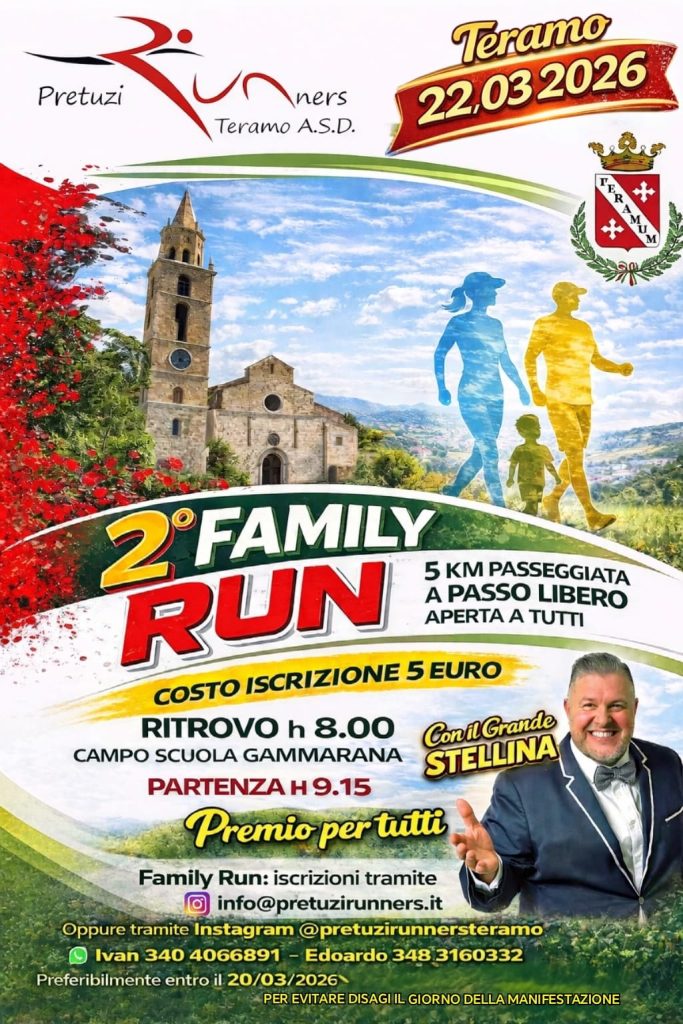Per tutti i partecipanti è previsto l’omaggio di un bel pacco gara. Il ritrovo è fissato alle 7:30, mentre la partenza verrà data alle 9. A seguire alle 9:15 la partenza della Family Run mentre alle 11 circa sono previste le premiazioni. A rendere l’evento ancora più speciale la presenza di Giovanni Di Cesare, in arte Stellina, noto per il suo umorismo travolgente e la simpatia contagiosa.