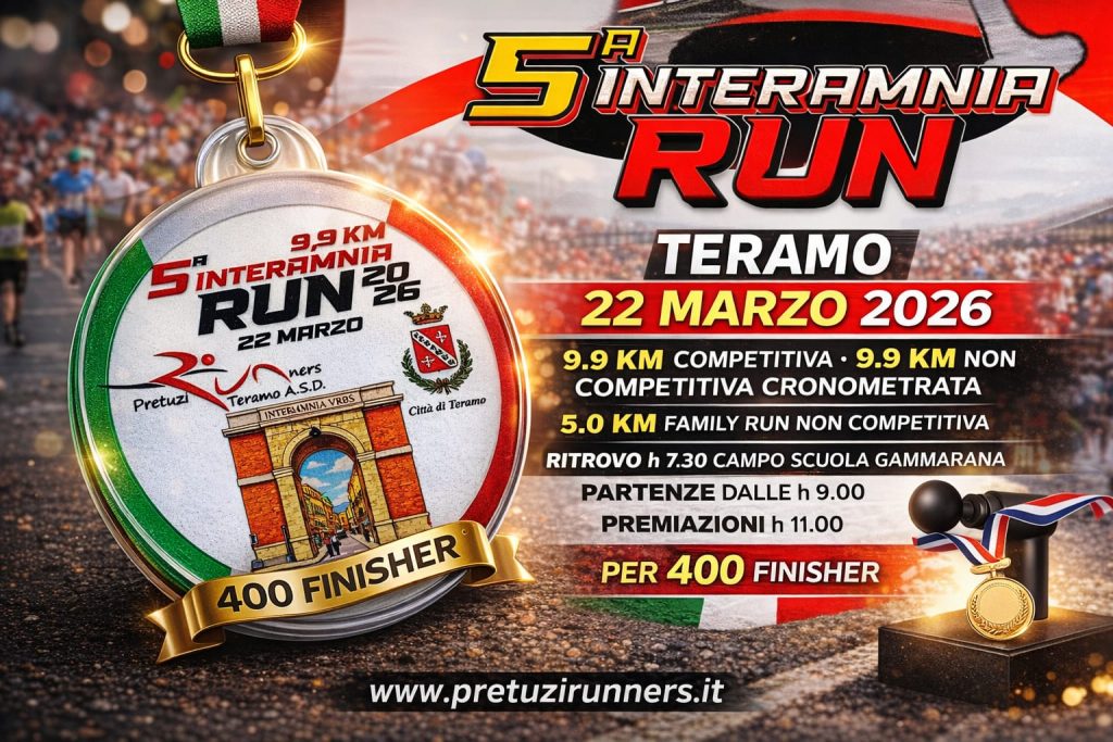 TERAMO – Ultimi ritocchi organizzativi e grande attesa a Teramo per la quinta edizione dell’Interamnia Run, evento organizzato dalla «Pretuzi Runners Teramo» che celebra anche il decennale del gruppo podistico, traguardo importante per la compagine teramana, in programma domenica 22 marzo.