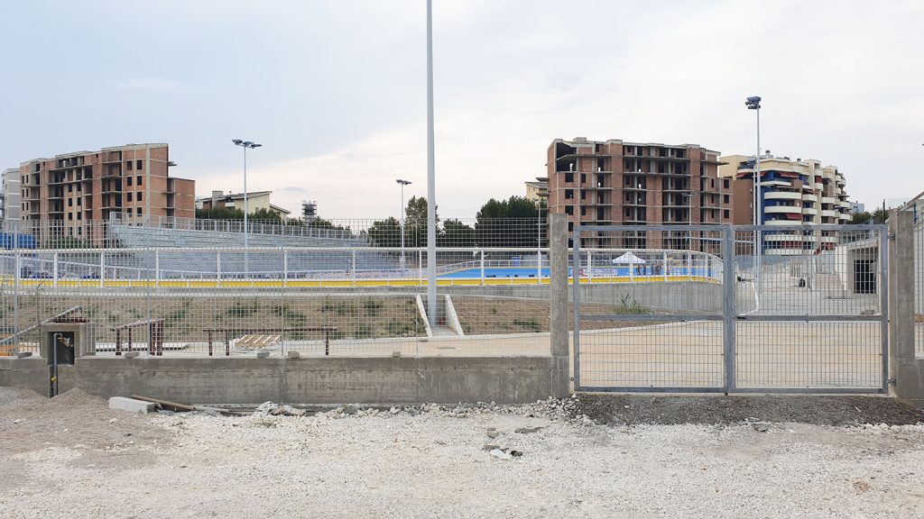 MONTESILVANO – Reti metalliche e pavimentazione da sistemare ci ricordano che ci sarà ancora da lavorare prima che il cantiere del nuovo stadio di pattinaggio di Montesilvano possa esser completamente smantellato per poter accendere i riflettori sulla prima manifestazione internazionale in programma il 13 settembre prossimo.