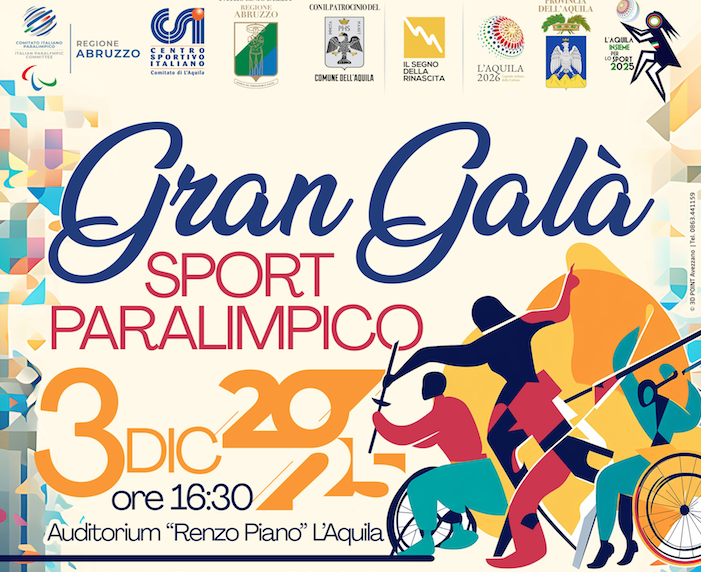 L’AQUILA – È’ tutto pronto per il Gran Galà dello Sport Paralimpico in programma domani, mercoledì 3 dicembre, presso l’Auditorium Renzo Piano dell’Aquila. L’ormai consueto appuntamento annuale, celebra le eccellenze che, nel corso del 2025, si sono distinte nel panorama sportivo e sociale regionale, nazionale e internazionale, nell’ambito dell’inclusione e della valorizzazione delle diversità.