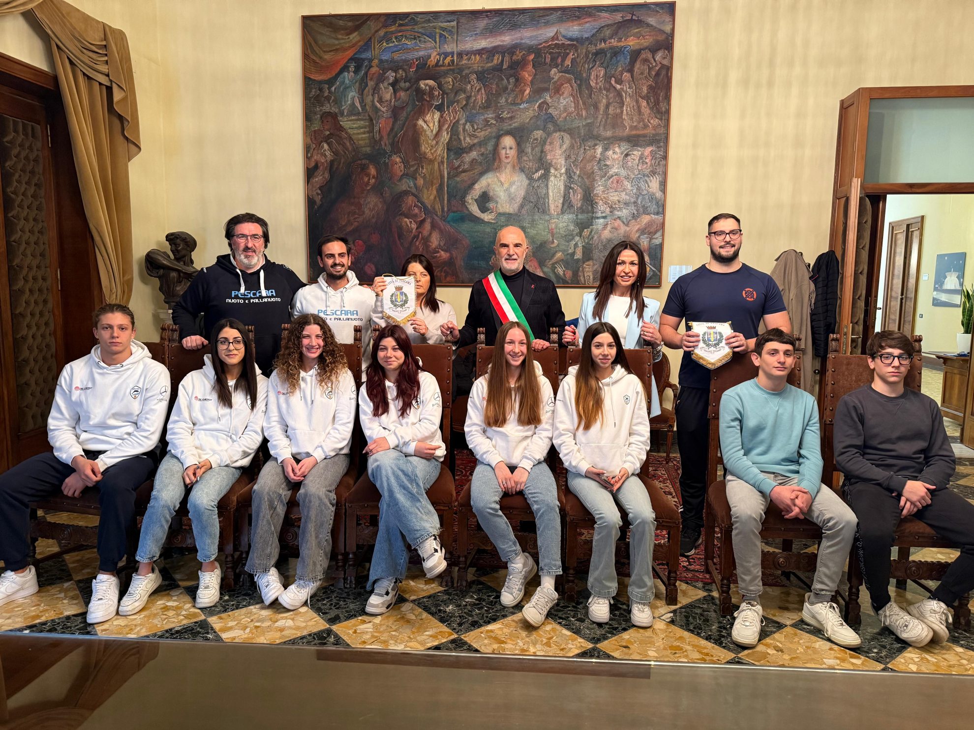 I colori locali saranno rappresentati dalla nutrita presenza di undici giovani atleti, di cui nove della Pescara Nuoto e Pallanuoto e due del Club Aquatico. Il sindaco Carlo Masci e l’assessore allo Sport Patrizia Martelli hanno voluto incontrarli in Comune, con i rappresentanti delle due società, per conoscerli a augurare loro il meglio possibile per questo appuntamento e anche per quelli futuri. Per la società Pescara Nuoto e Pallanuoto c’erano il direttore sportivo Giampiero Lattanzio, l’allenatore Mattia Trignani e la presidentessa Stefania Scolta, per il Club Aquatico c’era l’allenatore Emanuele Di Nicola.