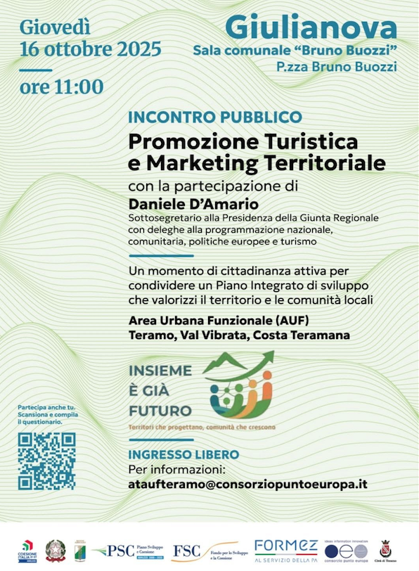 Quanto ai finanziamenti previsti per il quadriennio 2026-2029, la cifra messa sul tavolo per finanziare la macchina della promozione turistica è in totale di 14 milioni di euro. Tante risorse economiche che saranno ripartite fra Aree interne, con un budget di 10.500.000 euro, ed Aree Urbane Funzionali, con 25 Comuni riconducibili a Teramo, Val Vibrata e Costa teramana, cosiddette AUF, che di fatto sono gli aggregati contigui che includono una grande città (superiore ai 50mila abitanti) in questo caso Teramo, alle quali spetta un budget di 3.500.000 euro di finanziamento.